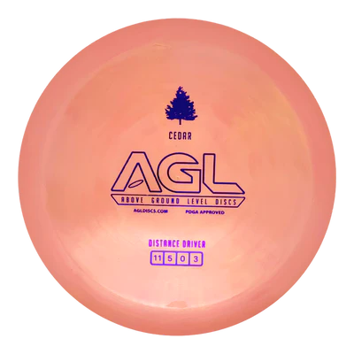 The AGL Discs Cedar is an overstable distance driver which came onto the scene in March of 2020. The Cedar was molded to replace our very first disc, the now out of production Cypress distance driver. The Cedar is perfect for forehands or for really cranking on your shot with a big anhyzer because it can handle big arm speed, or headwinds. With flight numbers which rate at 11/5/0/3 this disc is long, but predictable. The Cedar is the flagship driver in the AGL lineup, but it is one that can be relied upon. Those who remember the Cypress will find that the Cedar fits nicely into the hole left in the bag when the Cypress went out of production. Take your distance game Above Ground Level and bag your Cedar today.