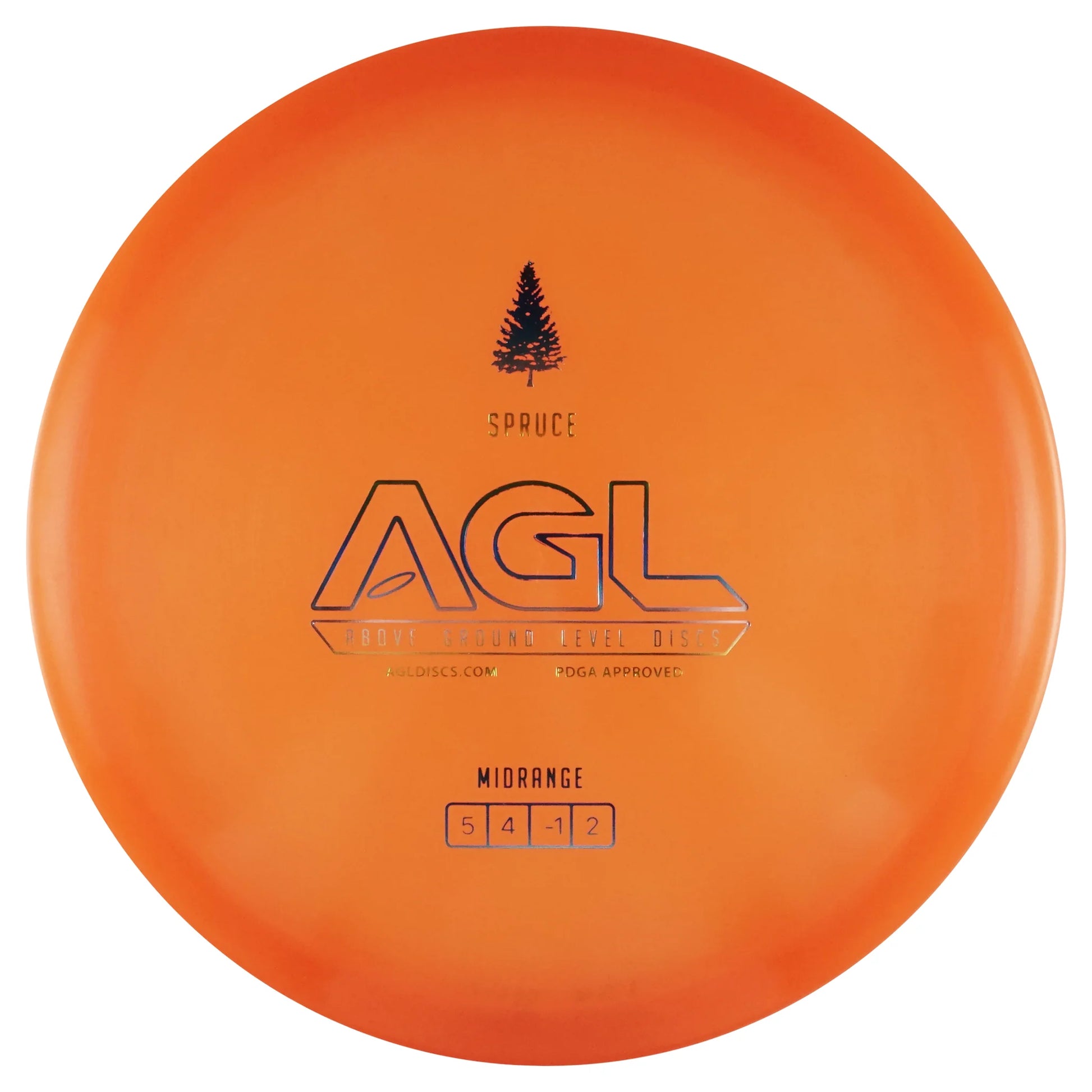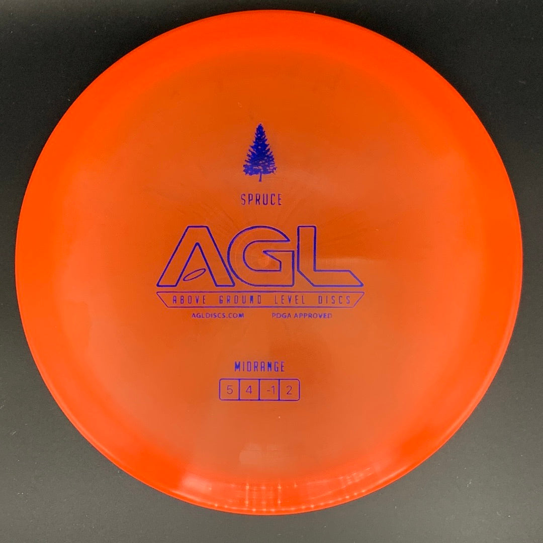 The AGL Discs spruce is a slightly understandable midrange beadless disc. This mid is slightly thinner compared to our other mids, which gives it a super comfortable feel in the hand. This disc is amazingly controllable but when given enough power can flip to flat on a hyzer release. With the flight numbers of 5/4/-1 / 2, this disc can allow the player to mold all types of shots. Some of the Alpine models may actually have some dome to them, and therefore catch some more glide; but the Woodland models typically come out flatter and more true to the numbers. Our fans and team members have fallen in LOVE with this and we know you will too!