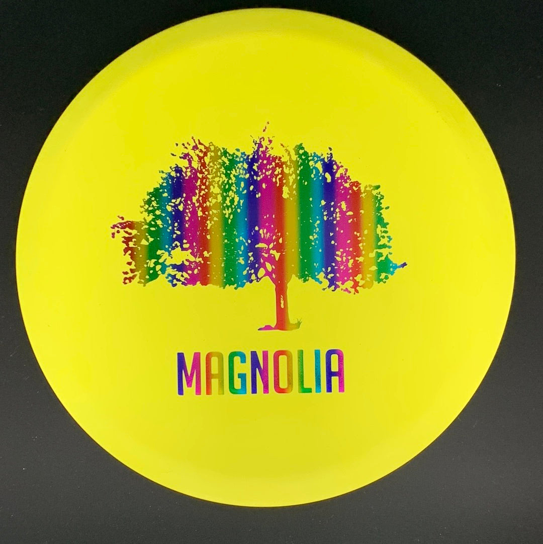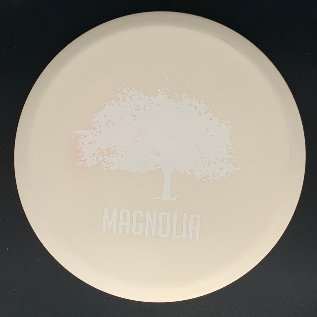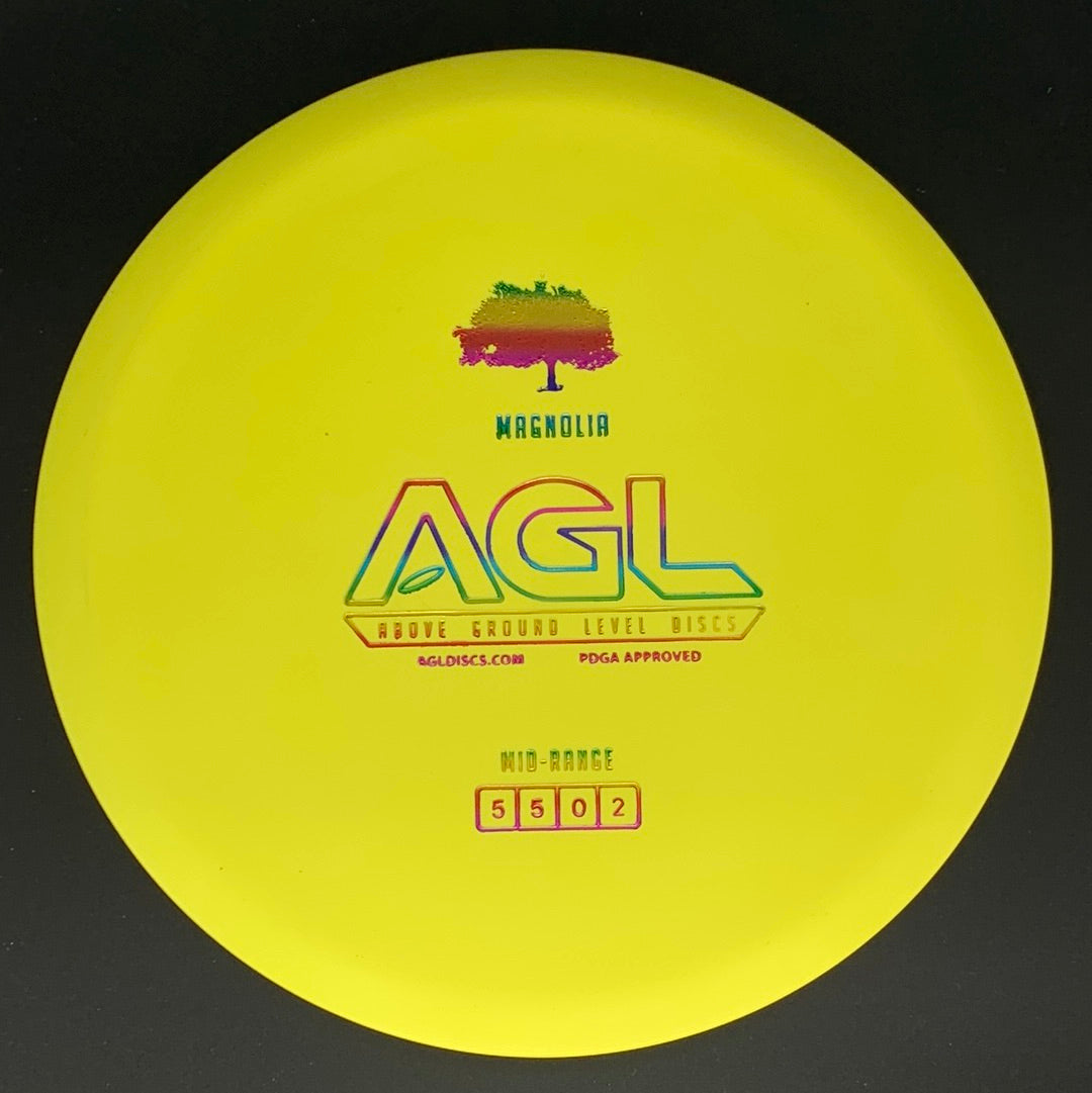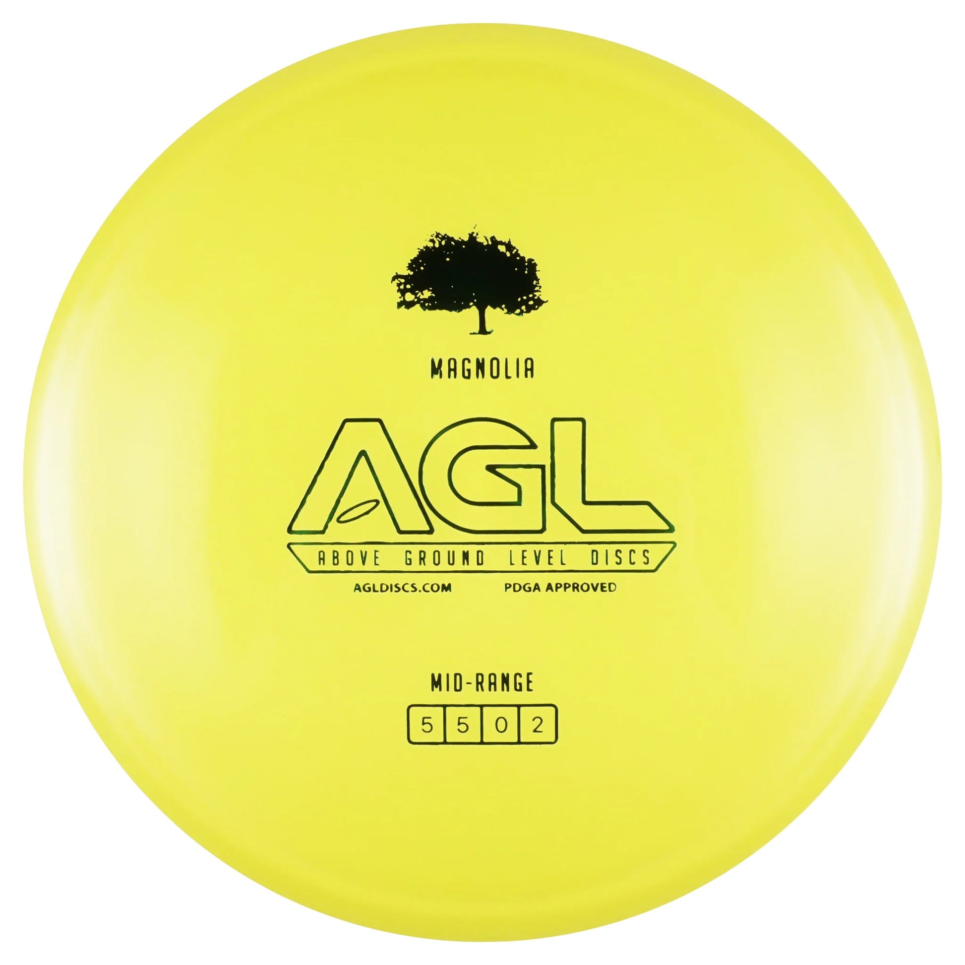 The AGL Discs Magnolia is a stable to slightly overstable midrange disc golf disc. The Magnolia represents AGL’s best selling mid and has become an instant classic for its versatility and the way it’s so easily controllable. The Magnolia mid-range is perfect for those intermediate shots where you need a disc to fly straight and fade predictably. With a (5/6/0/2 Alpine & 5/5/0/2 Woodland) flight rating this disc is just fast enough to be able to withstand a bit of power, but still slow enough to give you pinpoint accuracy. The disc has so much GLIDE in our Alpine we had to change the numbers and now call it a 6-Glide!!! The stability of the Magnolia also means it is more than able to be thrown forehand into those touchy approaches. Find out why the Magnolia is the most popular mid-range in the AGL lineup today!