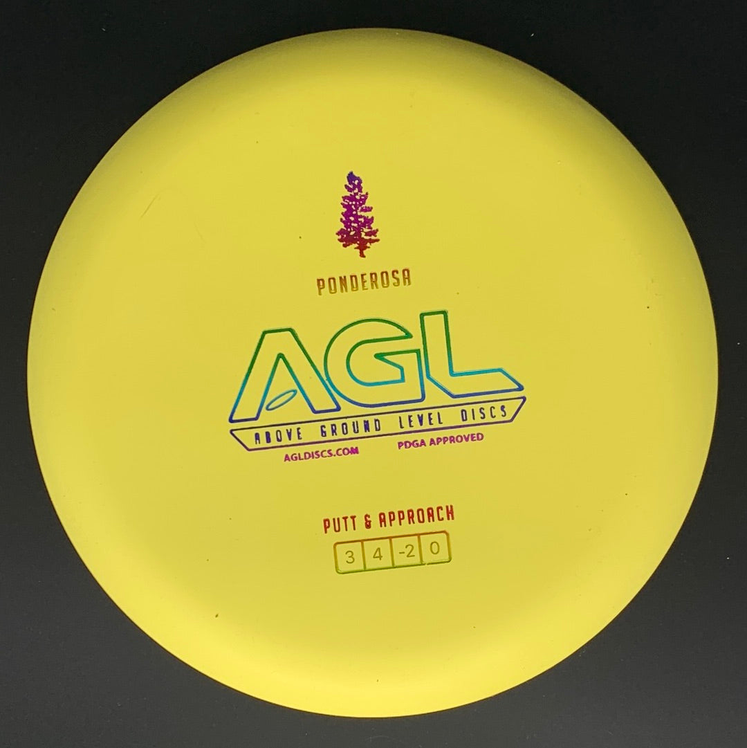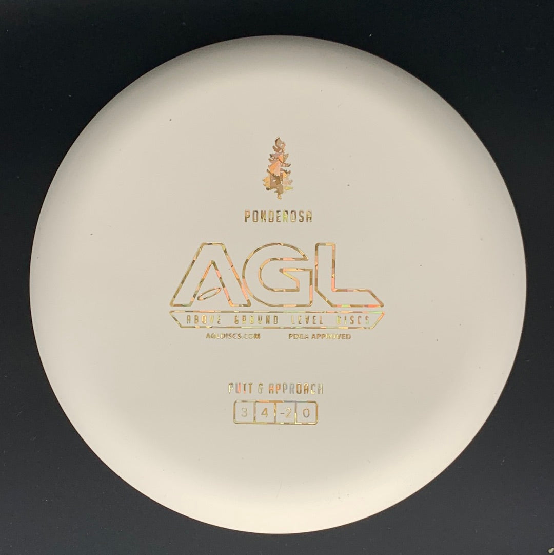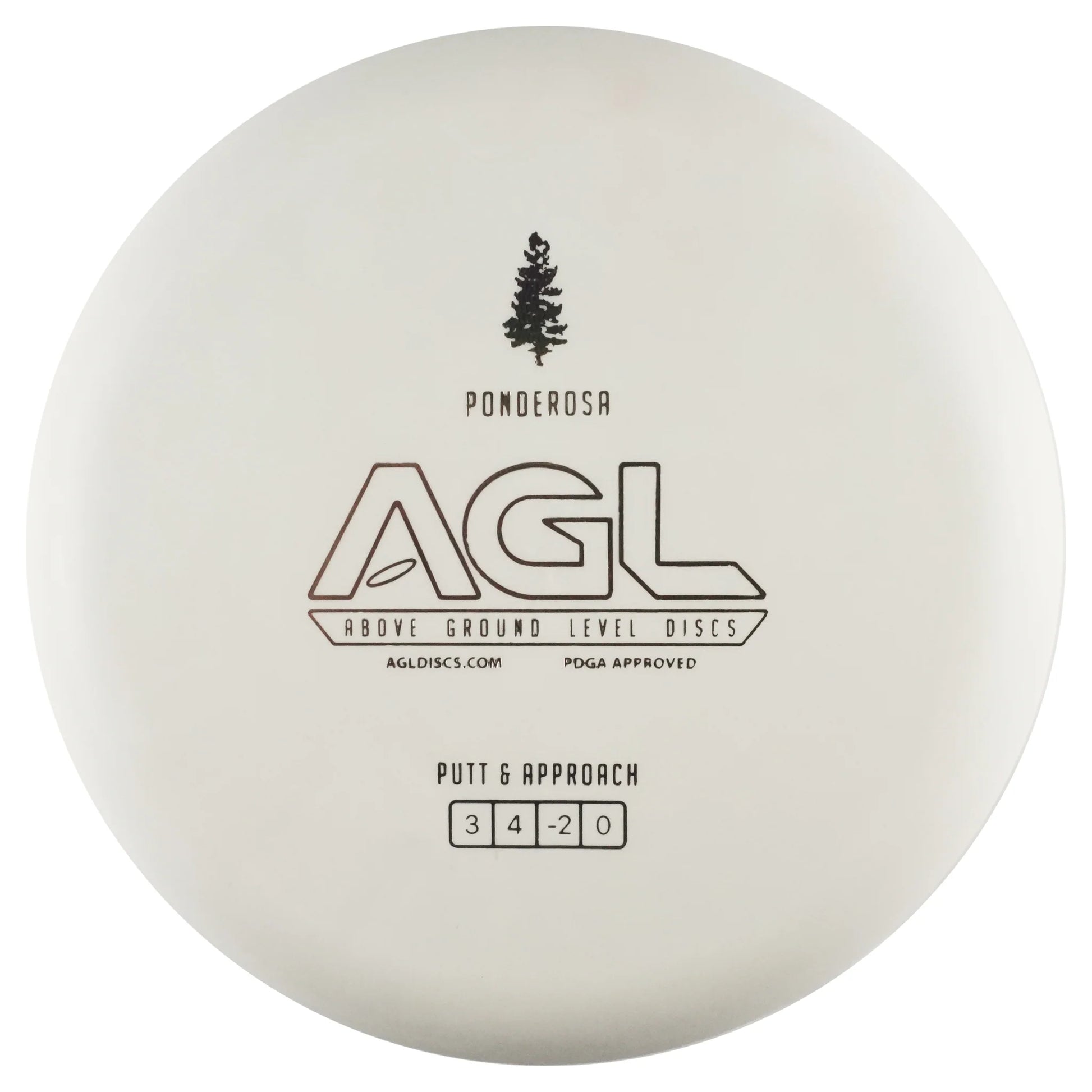 The AGL Discs Ponderosa is an understable GLIDEY putter of a disc golf disc. The Ponderosa is perfect for beginners and veterans alike, as it really does take a lot of the work out of putting. The flight numbers which ring in at 3/4/-2/0 mean that this disc pops up and flies straight and long for slower arms, and it provides long arcing turn over shots for those with a bit more power. The glide on this disc is CRAZY and means that the ponderosa is also a great circle 2 putter. The Ponderosa is the least stable of the AGL putters with the others in the lineup each adding an additional level of fade. Whether you are new to the game or looking to add a new dimension to your short game the Ponderosa will take your putts Above Ground Level.