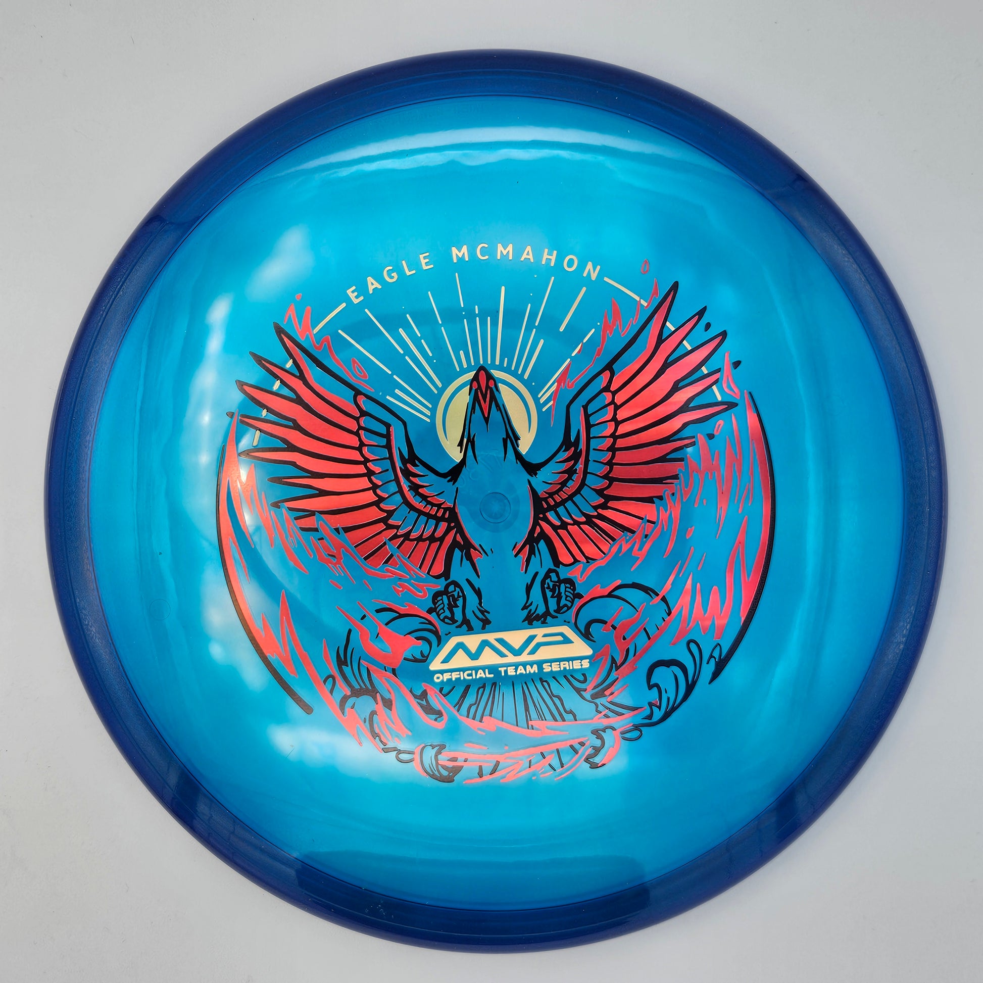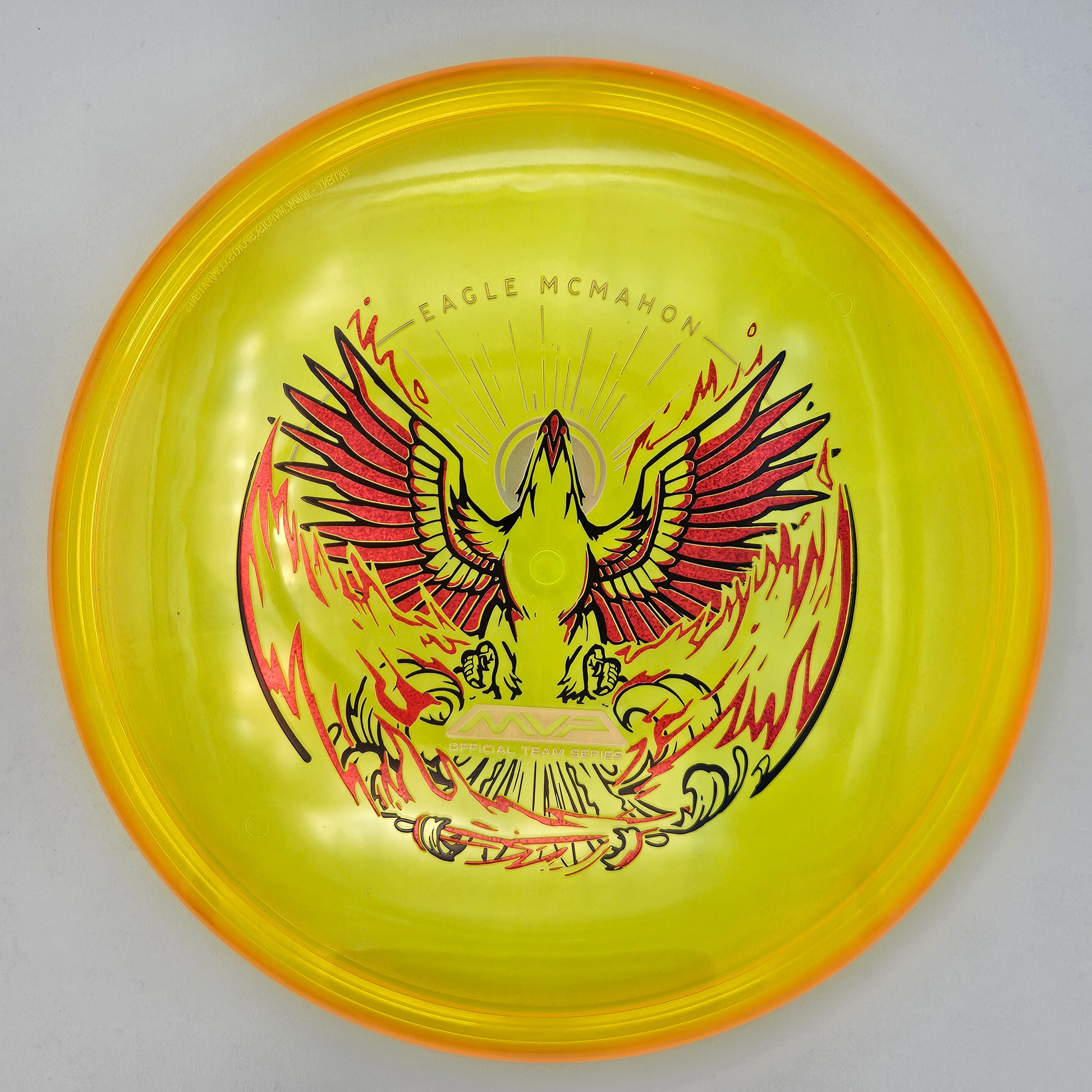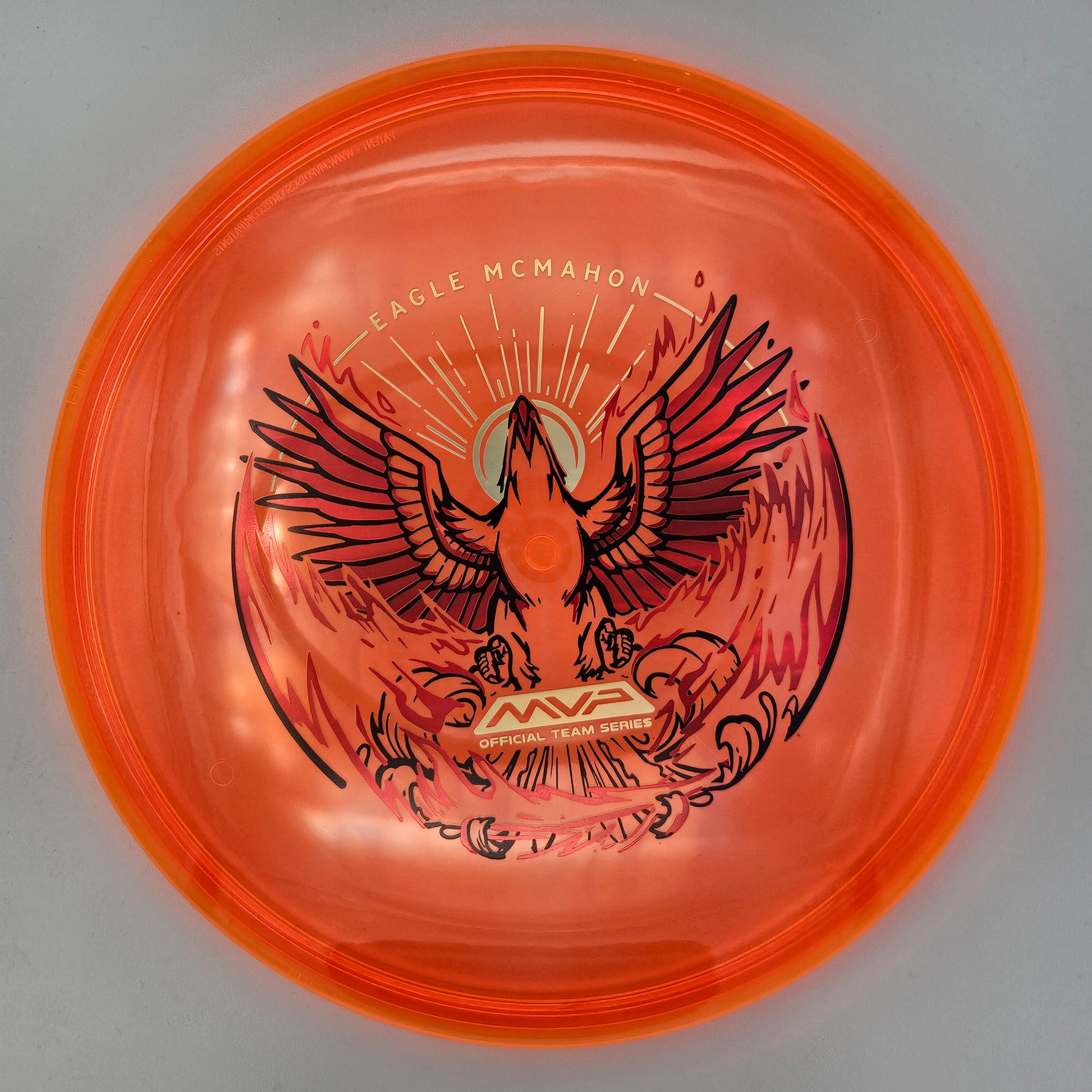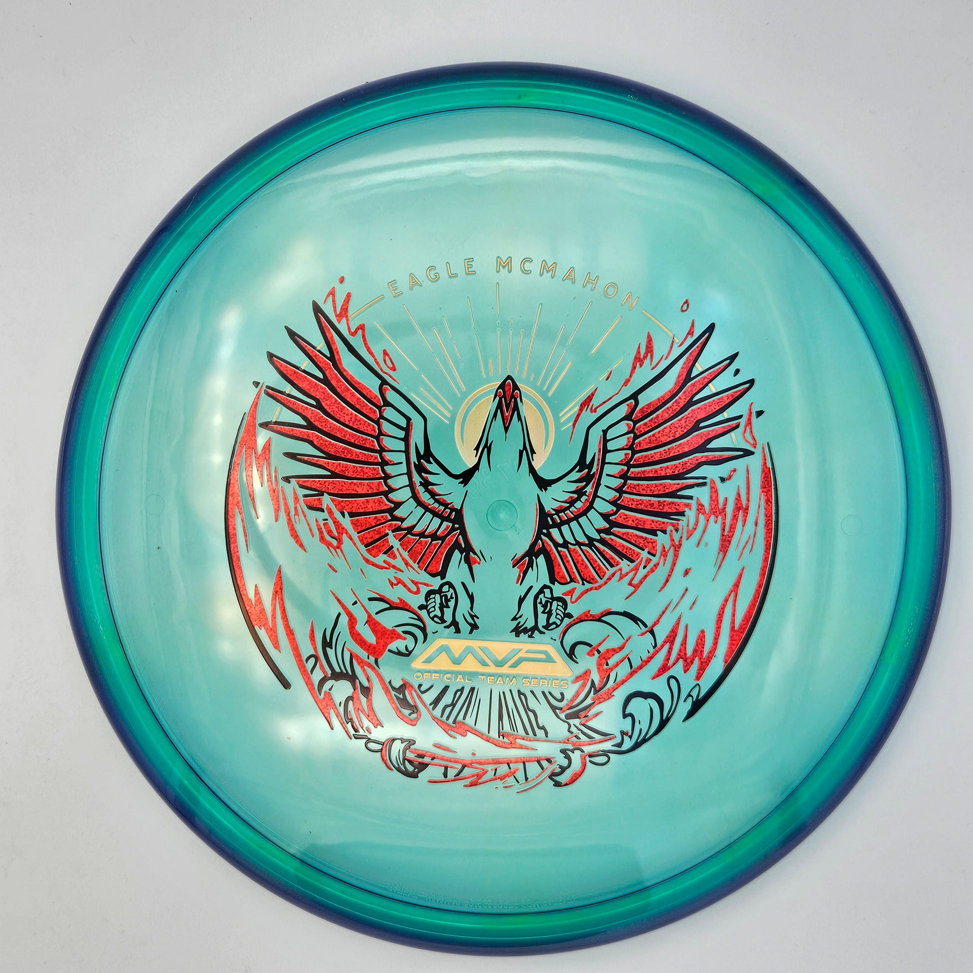 Like a phoenix rising from the ashes, Eagle McMahon’s first Official Team Series disc fully embraces the idea of new beginnings and the fire that burns within. Suitably named “Rebirth”, Mike Inscho has beautifully illustrated Eagle’s first triple-foil stamp, featuring an eagle rising from the ashes on his personal mold of choice, the Prism Proton Envy. Don’t miss your chance to snag the very first of what is sure to be a long line of discs that directly support Eagle!