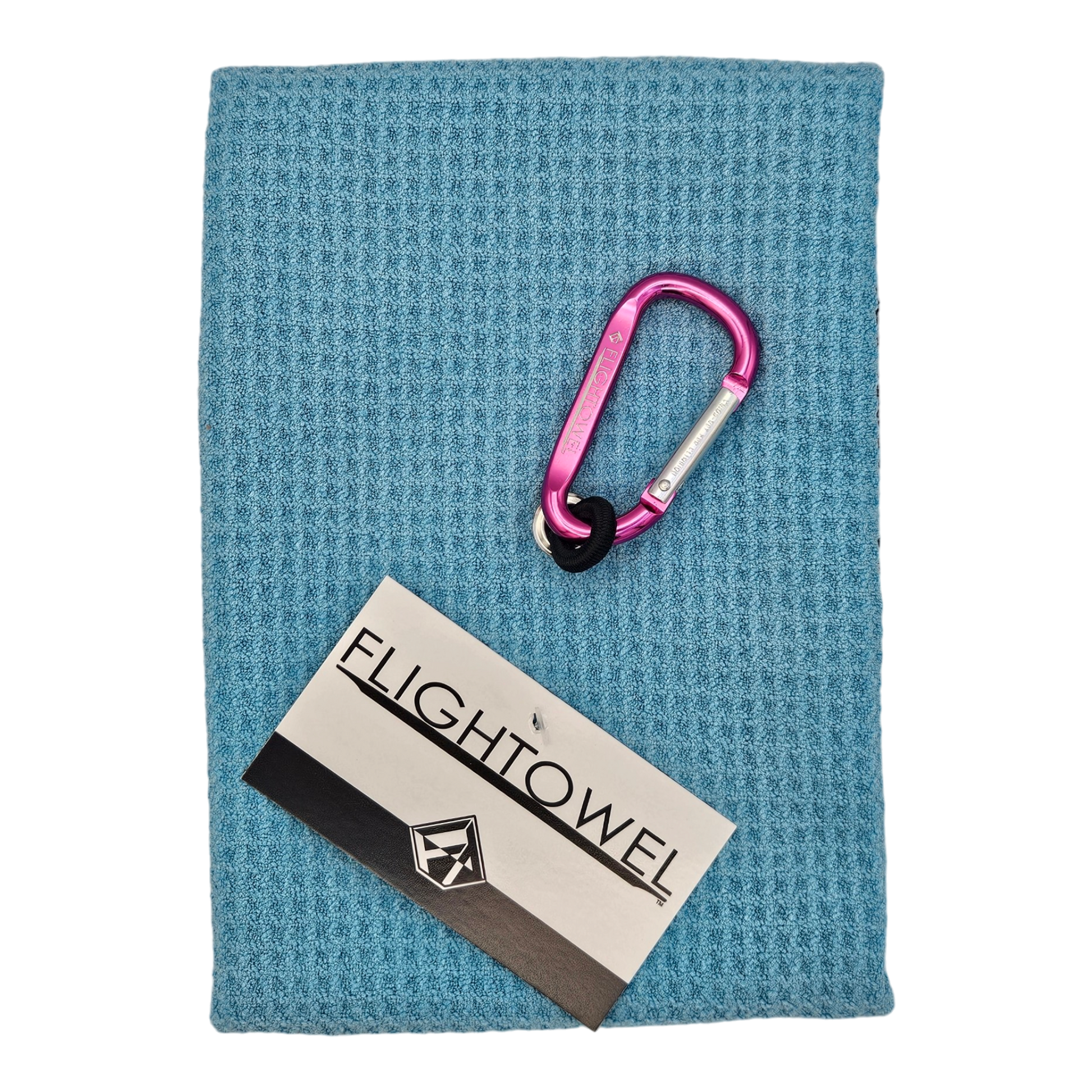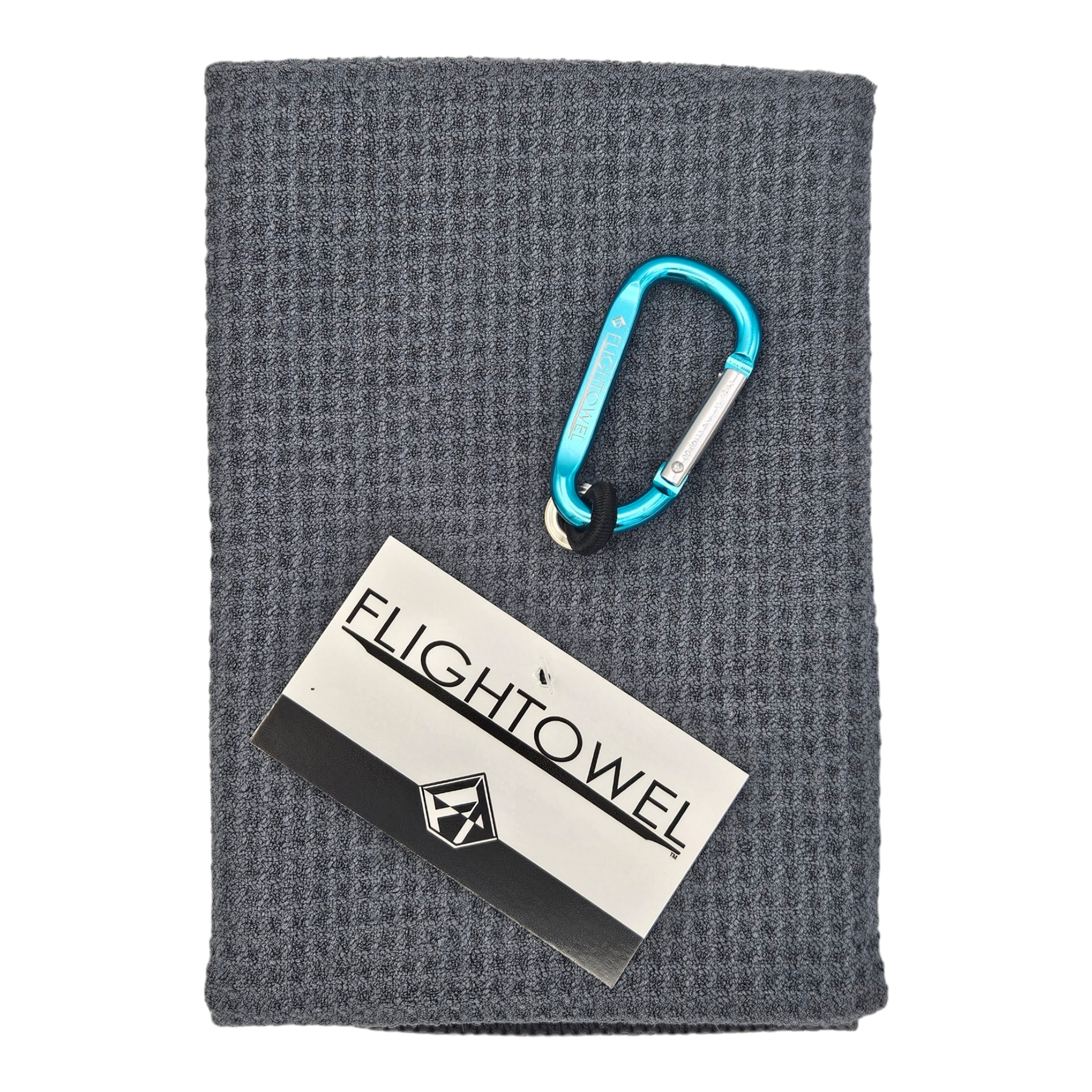 Perfect for any bag, cart or belt loop, you just can’t go wrong with the FlighTowel JR. Being the largest disc golf towel we offer, and with it’s unique design, it still doesn’t drag the ground when on a backpack or cart. At approximately 16” X 24”, this microfiber towel has a small bungee and carabiner installed in the middle of the towel with a real piece of a disc used as a washer at the attach point (just like our mini). The drying capabilities of this towel are just awesome, the attach point is extremely strong, you are going to be impressed by they performance of these disc golf towels. Once again, we've created a disc golf towel like no other...