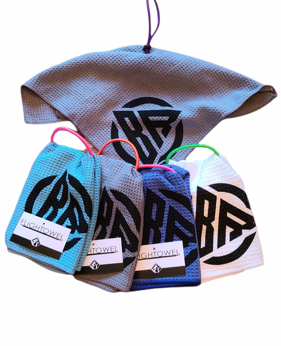 If you're just looking to keep things dry on the course, check out our FlighTowel Mini™!  It's unlike any other disc golf towel on the market, and a perfect compliment to the original FlighTowel™.  This 16" X 16" premium microfiber towel is designed to hang from its center so when attached to your disc golf backpack, cart, or wrist it's about half the length of most disc golf towels.  The bungee cord strap and adjustable toggle make this a very versatile towel that will be a great addition to any disc golfers bag, and we even use part of a real disc golf disc in the manufacturing process!  Check out a FlighTowel Mini™ today and say goodbye towels that drag the ground every time you set your backpack down, it truly is a disc golf towel like no other...
