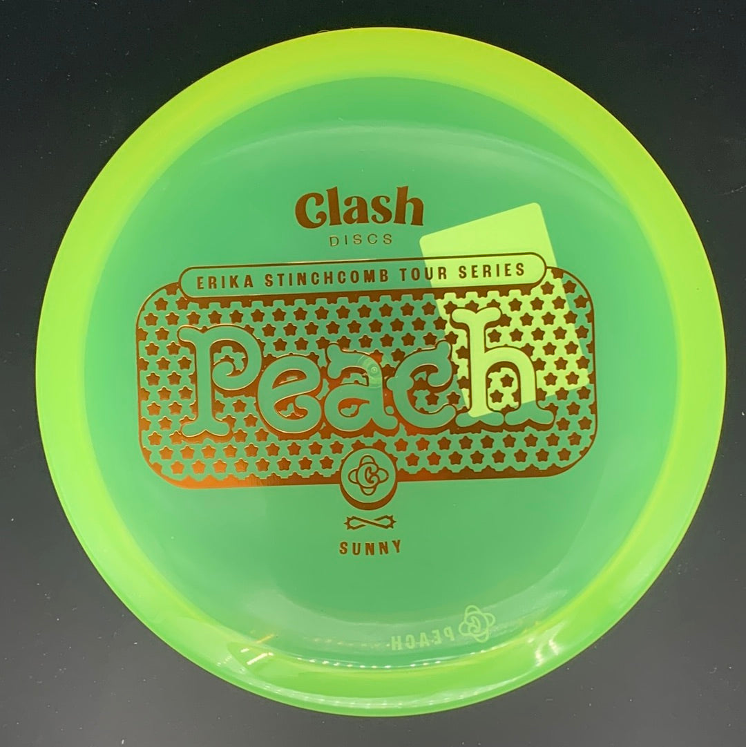 Peach is an understable midrange with a lot of glide. Low speed matched with the glide makes the disc a perfect choice for those tight wooded courses.