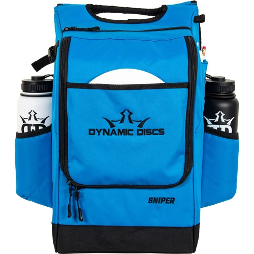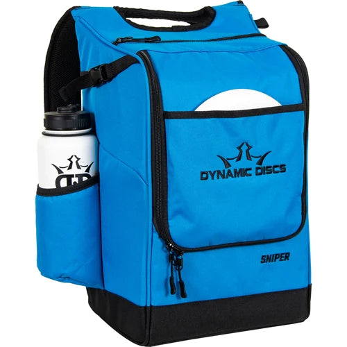 Holding 16 discs in the main compartment, this is not just a "weekend" bag. It can handle all you will need on the course. With a deep top zippered pocket and internal mesh pocket to take care of all of your extras, two bottle holders to carry your drinks and reinforced padded backpack straps, the Sniper is ready to get on the course and take out the competition.
