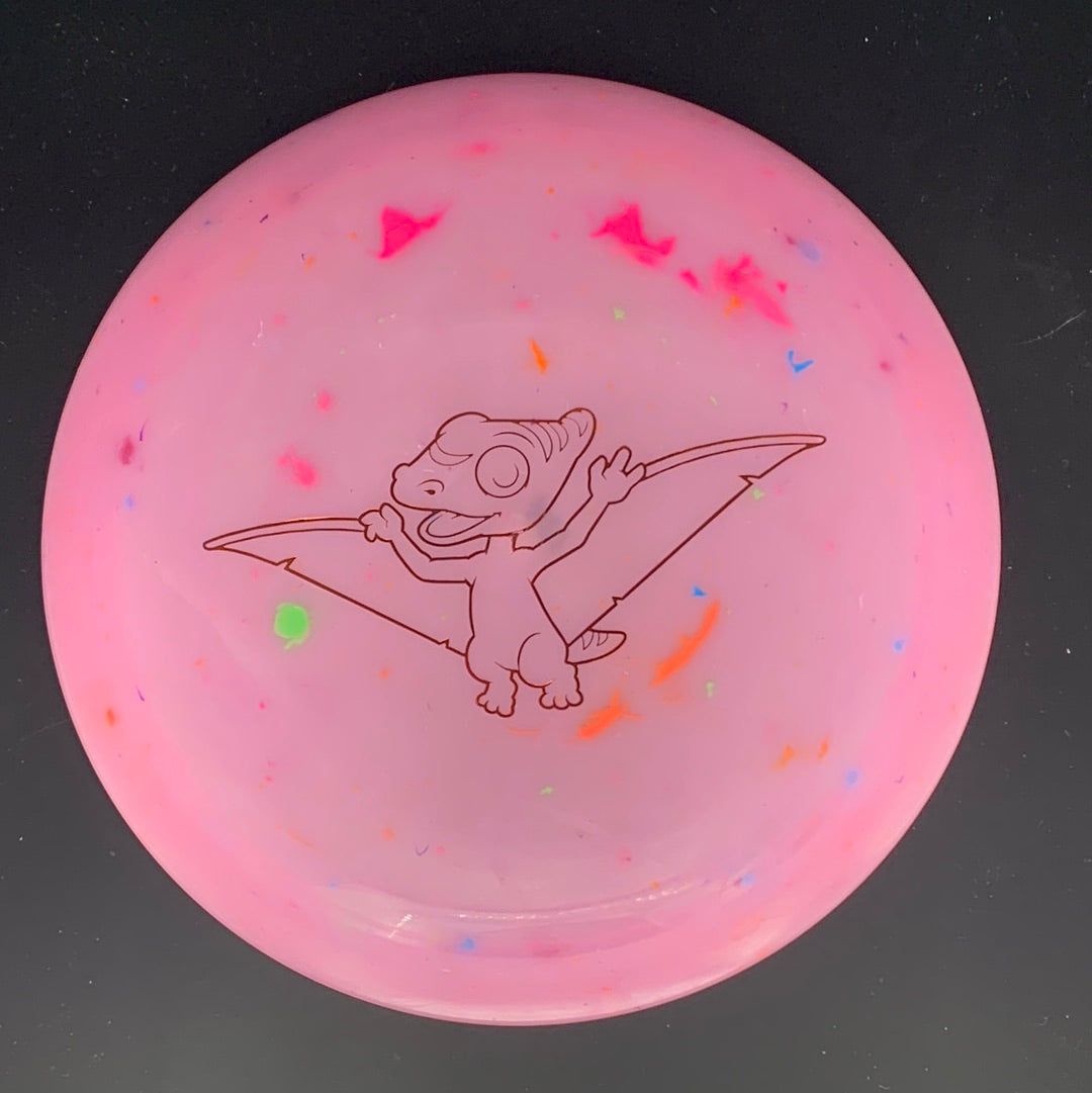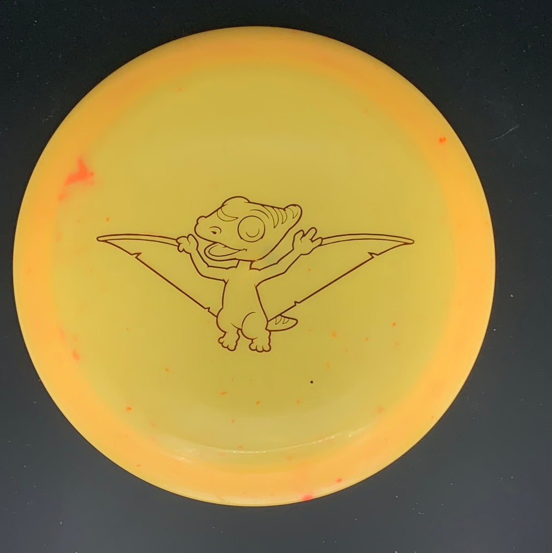 The Pterodactylus is a manageable driver for young disc golfers. The rim isn't too wide, thus a high-speed release is not necessary. However, it still lands in the "distance driver" category and provides a great gateway disc to longer, more impressive throws down the fairway. Like other Dino Discs, it is lightweight, floats in water, and is aimed at young players or those players without a lot of arm speed.