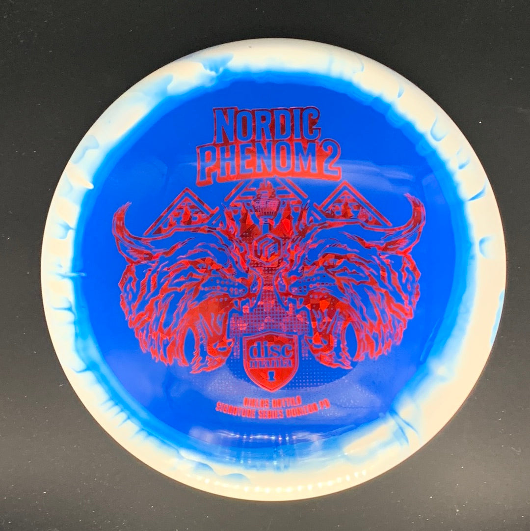 The Phenom strikes for a second time with Niklas Anttila’s second version of his famous PD, the Nordic Phenom 2. Discmania adjusted the flight of the disc just a bit to give it a slightly straighter flight path with the slightly more domey profile and excellent glide PD lovers enjoy most. Discmania thoughtfully executed another nod to Niklas’ Finnish roots with another rendition of his famous fateful Lynx design.