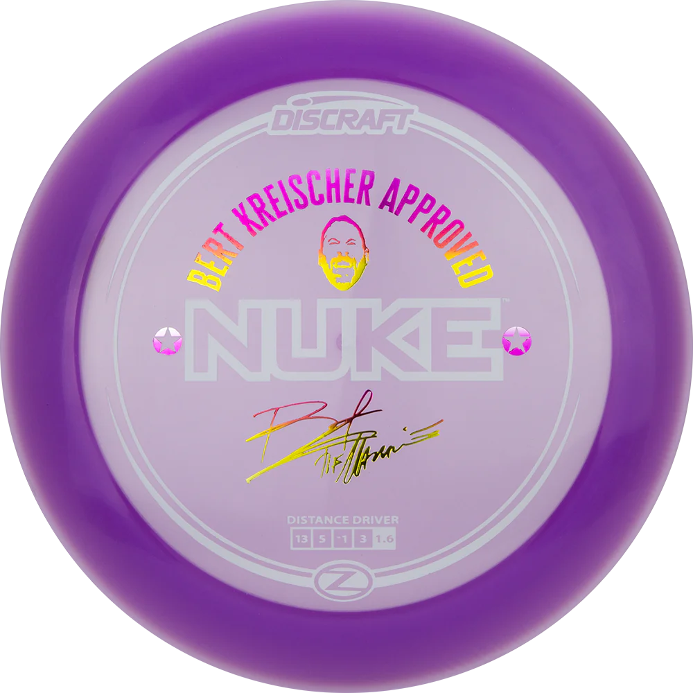 Dive into this trio of discs, handpicked by Bert Kreischer for DGLO! This set includes 3 of Discraft’s favorite molds: the Z Nuke, engineered to optimize your distance; the ESP Buzzz, a versatile disc trusted by professionals and amateurs alike, and the Jawbreaker Roach, a putter that is crafted for chasing chains.
