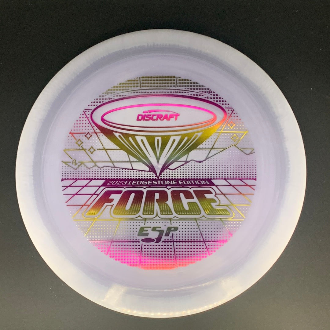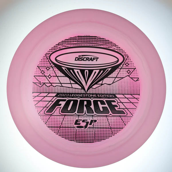 This max distance, overstable driver is built for big arms looking to throw far. The Force’s heavy overstability allows it to resist turning over, even at high speeds. On anhyzer angles, this disc works hard to flex out and fade at the end, maximizing flight time and distance off the tee. This particular run weighs in between 160 and 170 grams with medium dome, making the Force accessible to more intermediate arm speeds. This run is flippier than standard ESP Force runs, giving these Forces the ability to push for more distance.