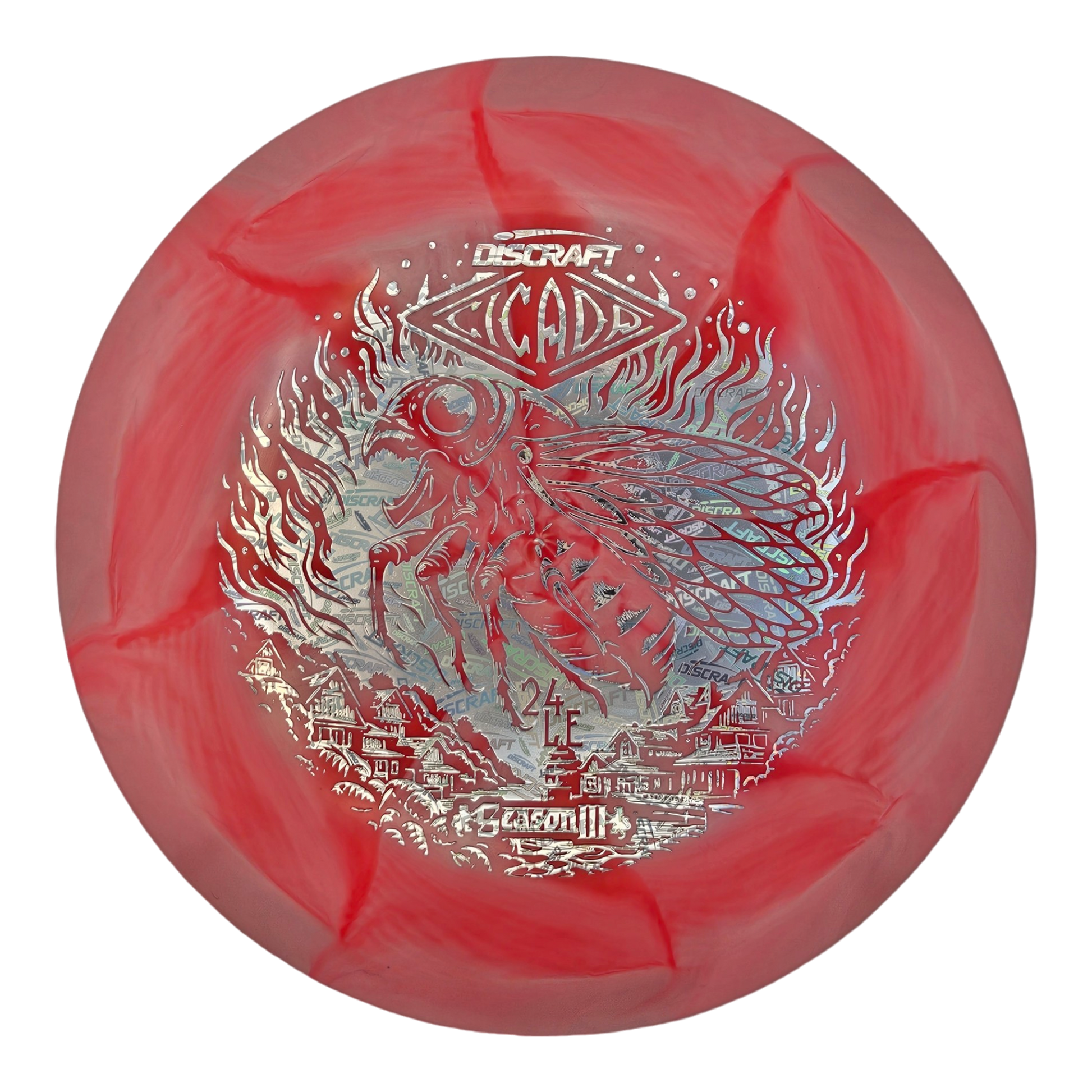 Discover the ESP Cicada, a driver renowned for its superior grip and stability. This disc offers exceptional handling in various conditions, making it a reliable choice for players seeking consistent performance. Its balance of durability and flexibility ensures a predictable flight, ideal for players aiming to refine their game. Additionally, the ESP Cicada stands out with its striking aesthetics, featuring vibrant colors that appeal to players who value style alongside functionality.