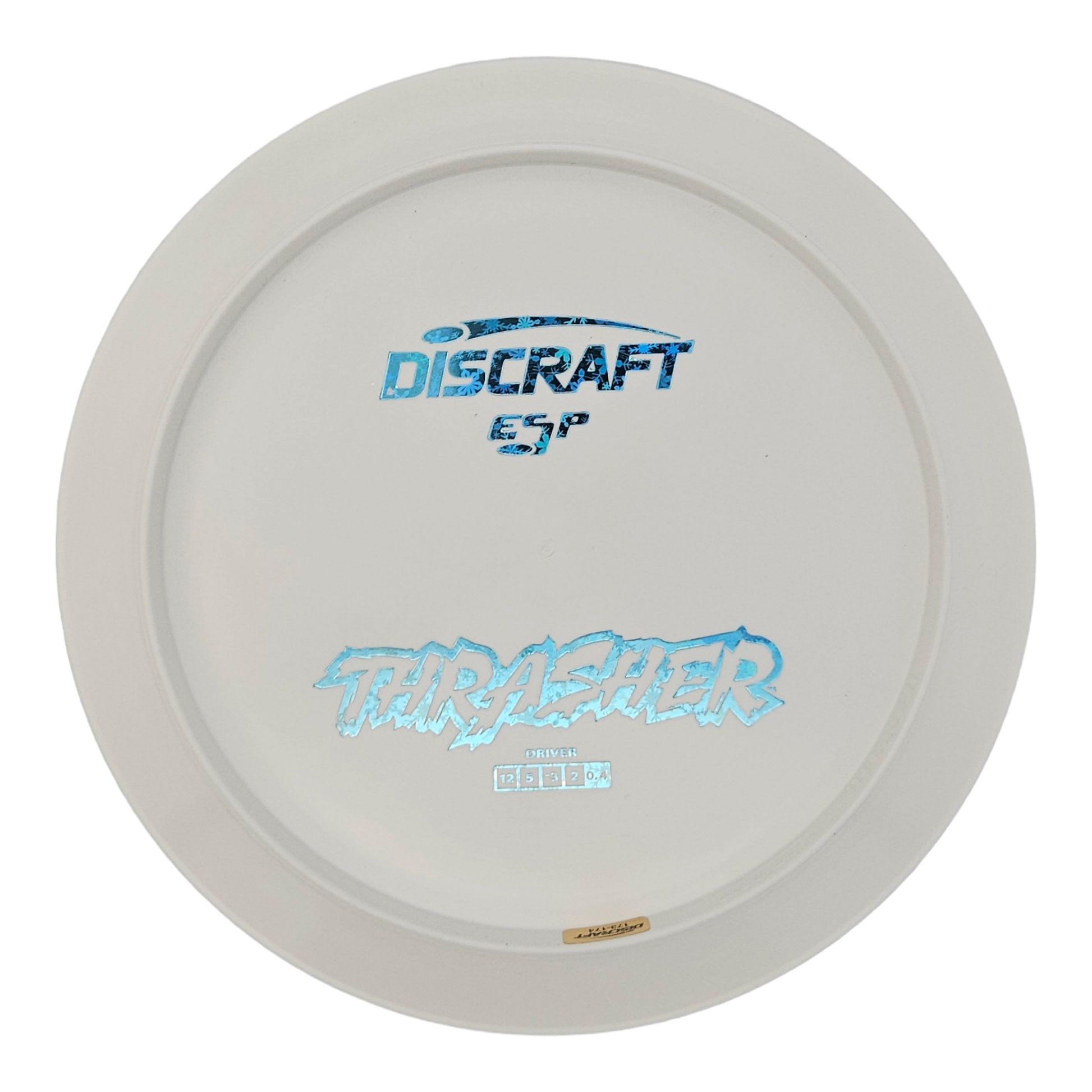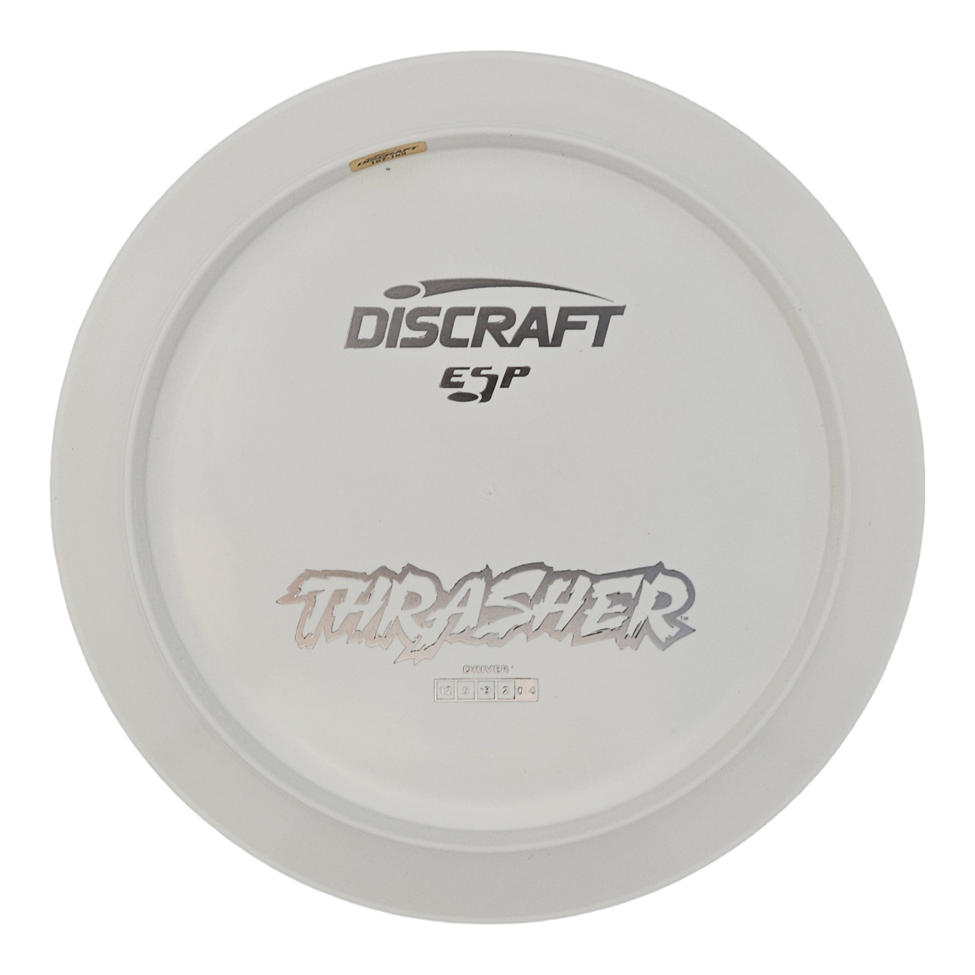 Introducing the Solid White ESP Thrasher, a fan favorite disc now optimized for the disc dyeing community. Crafted from durable ESP plastic, this white disc features a unique bottom stamp, providing a clean canvas for your artistic creativity. Engage with the disc golf community like never before, customize your Thrasher disc with vibrant colors and designs, and enhance its personality on the course.