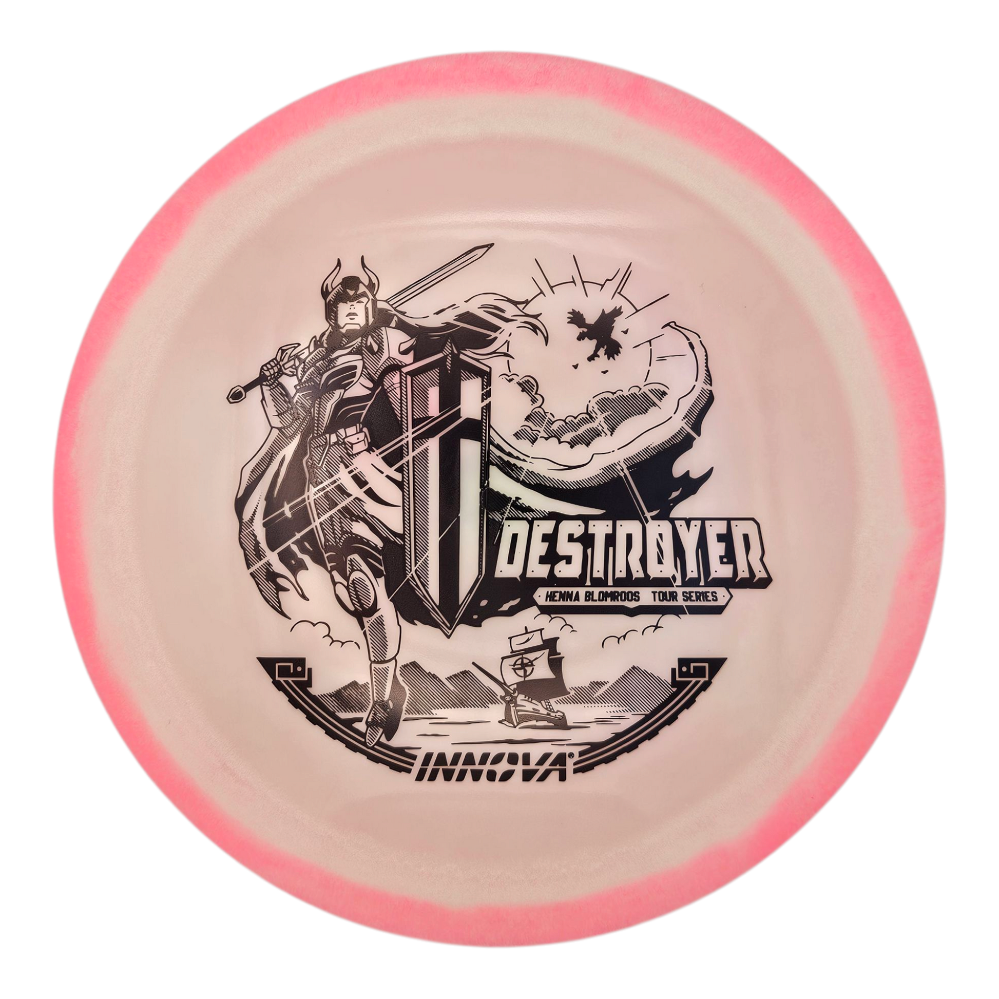 The Destroyer is a very fast stable long distance driver. Great disc for sidearm throwers and those with lots of power. Can handle headwinds and throws with off axis torque. Not suggested for beginning players.