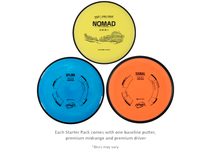 The MVP Premium Starter Set offers an easy introduction to the quality and style of MVP Disc Sports. Each box set includes three MVP discs — one Electron putter, one midrange, and a driver in an assortment of our Premium plastics: Plasma, Neutron, and Proton. Offering a great introduction setup to those who have never played, as well as disc golfers who don’t know what to try from the MVP lineup and MVP fans looking for an easy booster pack.